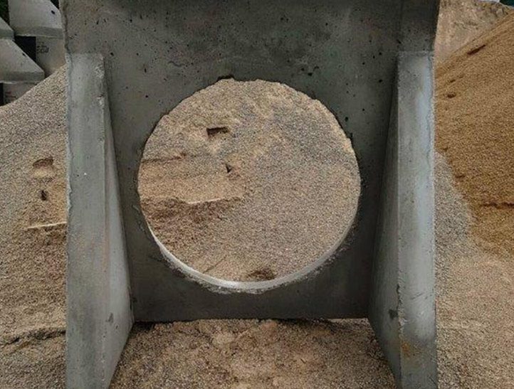Pieza monolítica de terminación de tubería en obra de drenaje longitudinal provista de tímpano y muros aletas.