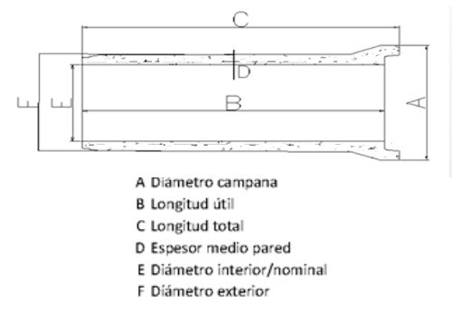 Elemento de sección transversal interior uniforme en forma de corona circular, y que en sentido longitudinal es recto. Unión elástica mediante junta de goma, fabricados según UNE-EN 1916:2003 y UNE 127.916 para conducciones sin presión.